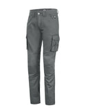 The cargo pant features four pockets—two front and two back—in addition to the classic side pockets that distinguish these models, and the classic button and zip closure.